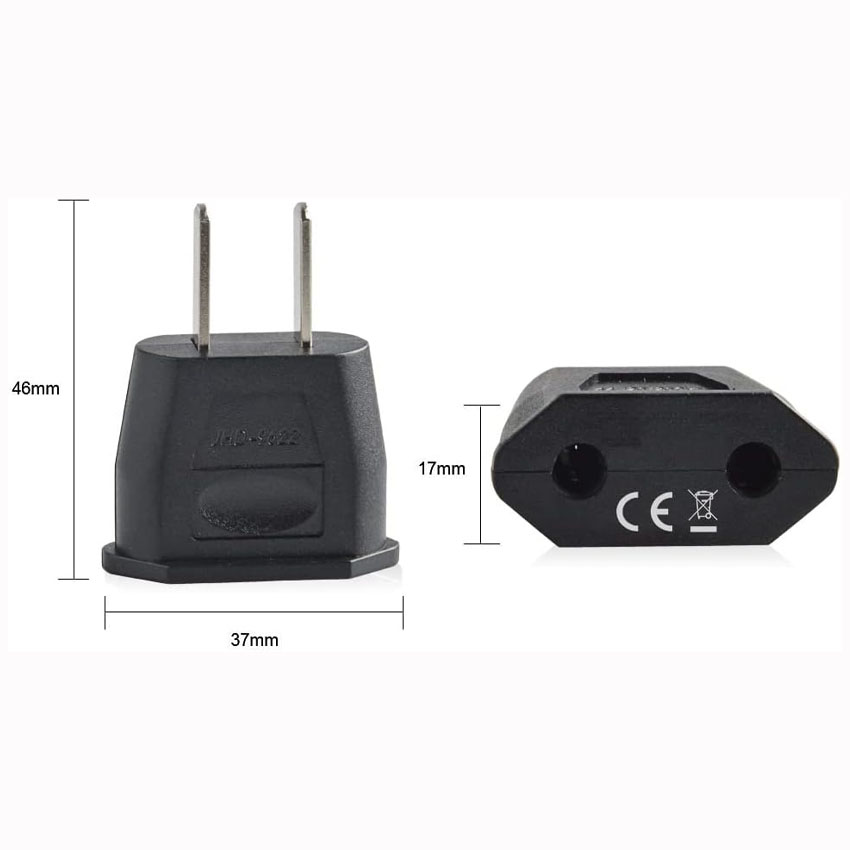 adaptador europeo adaptador de clavija europea tipo c a enchufe americano tipo americano 1-15. en color blanco, este adaptador consta de salida enchufe macho con dos espigas planas, con un pin algo más ancho que el otro. es polarizado, con una intensidad de 10a, su alimentación es de 15 v y admite una alimentación de corriente de hasta 250 v. ¡podrás conectar tus aparatos electrónicos con salida tipo c sin problemas! el adaptador a, también tiene una variante japonesa. resaltar que la clavija americana no entra en la toma japonesa, pero la japonesa si entra en la americana. la clavija japonesa entra en la toma americana.